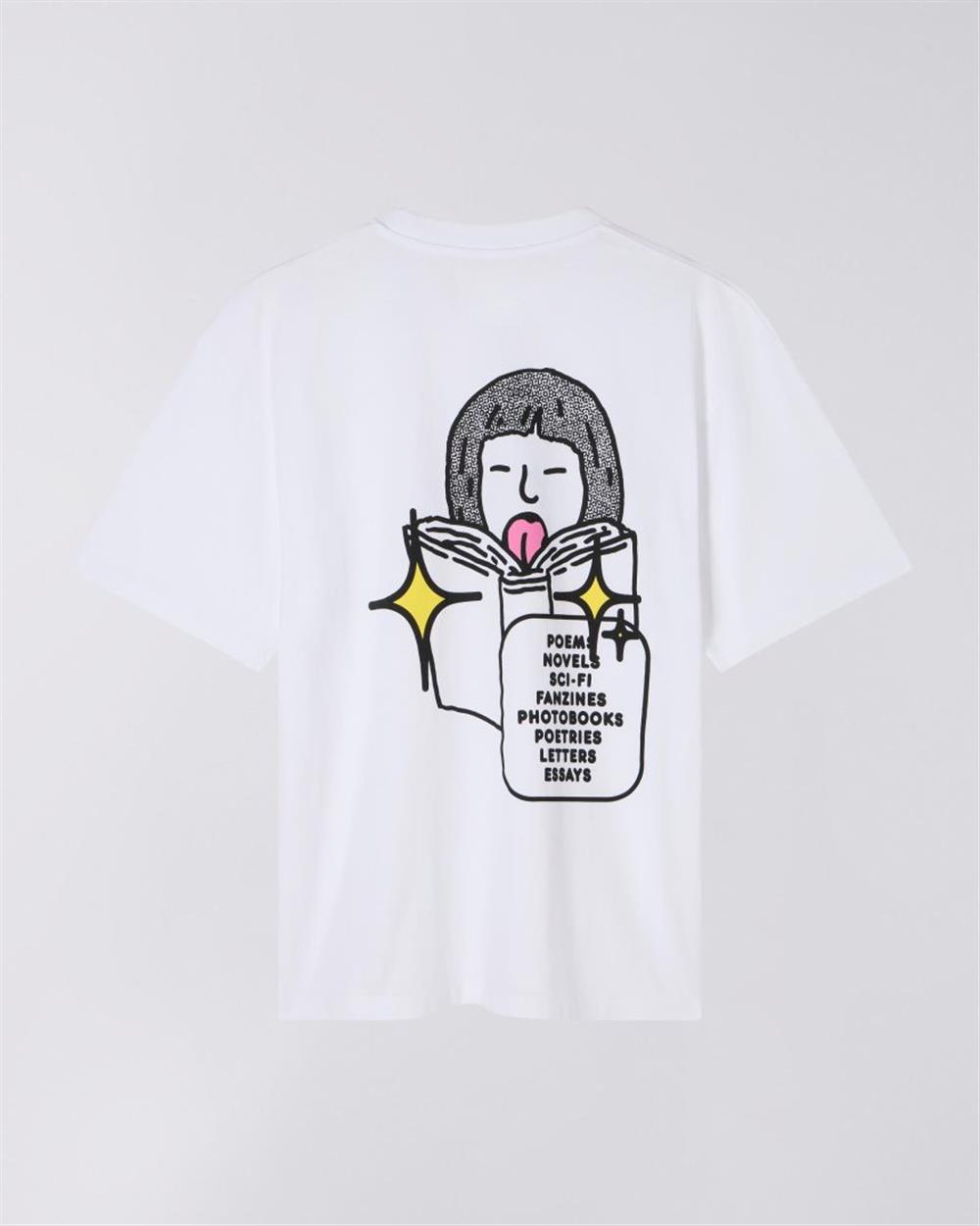 La T-Shirt EDWIN Love In The Books è una T-shirt oversize-fit con stampe davanti e dietro e maniche corte realizzata in 100% cotone.