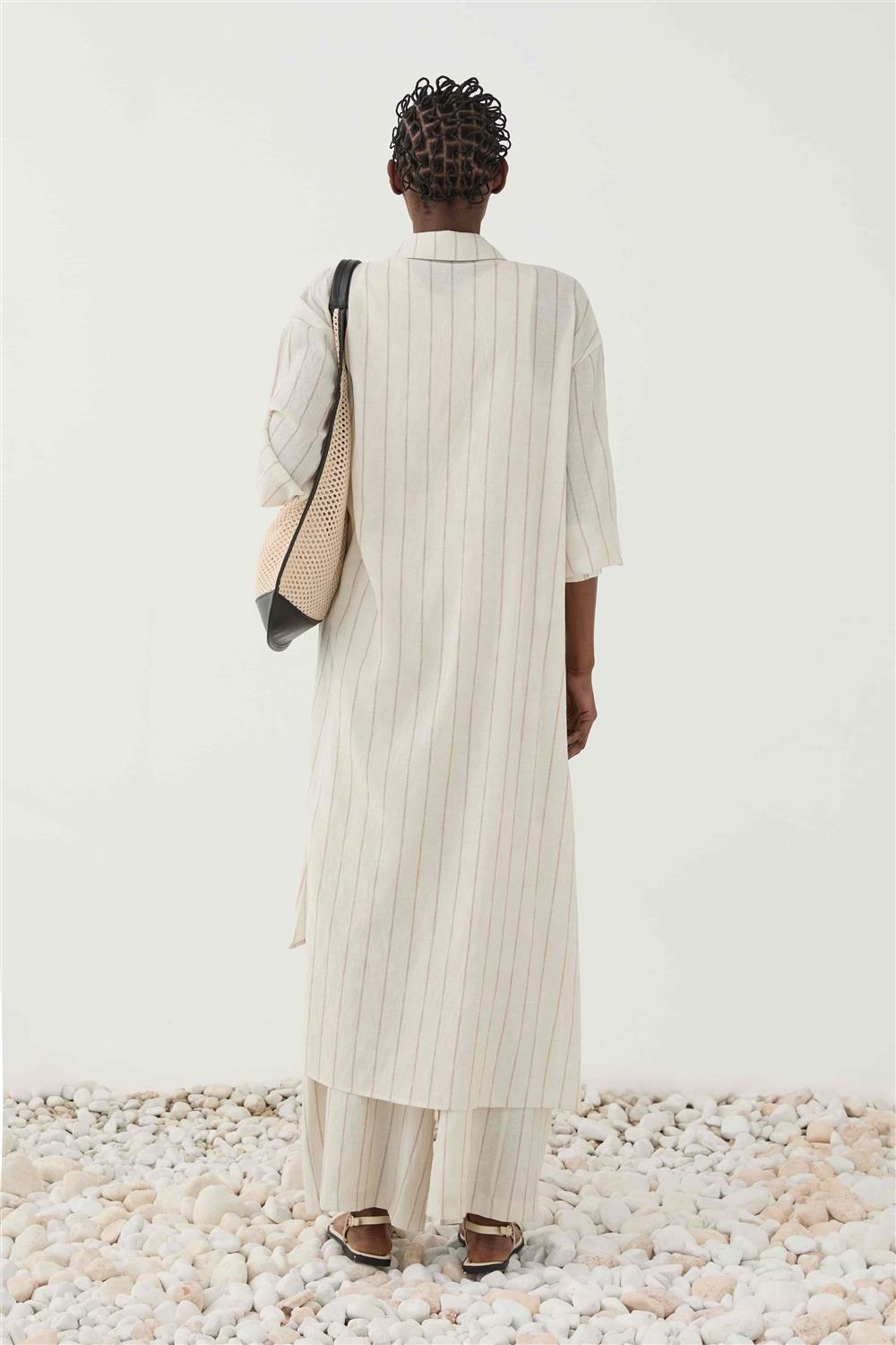 Camicia lunga a righe.