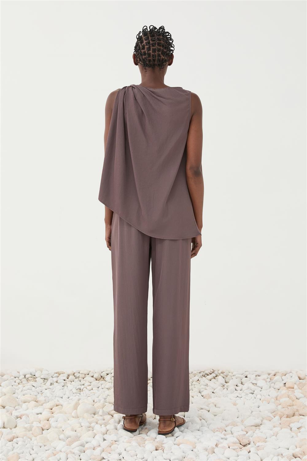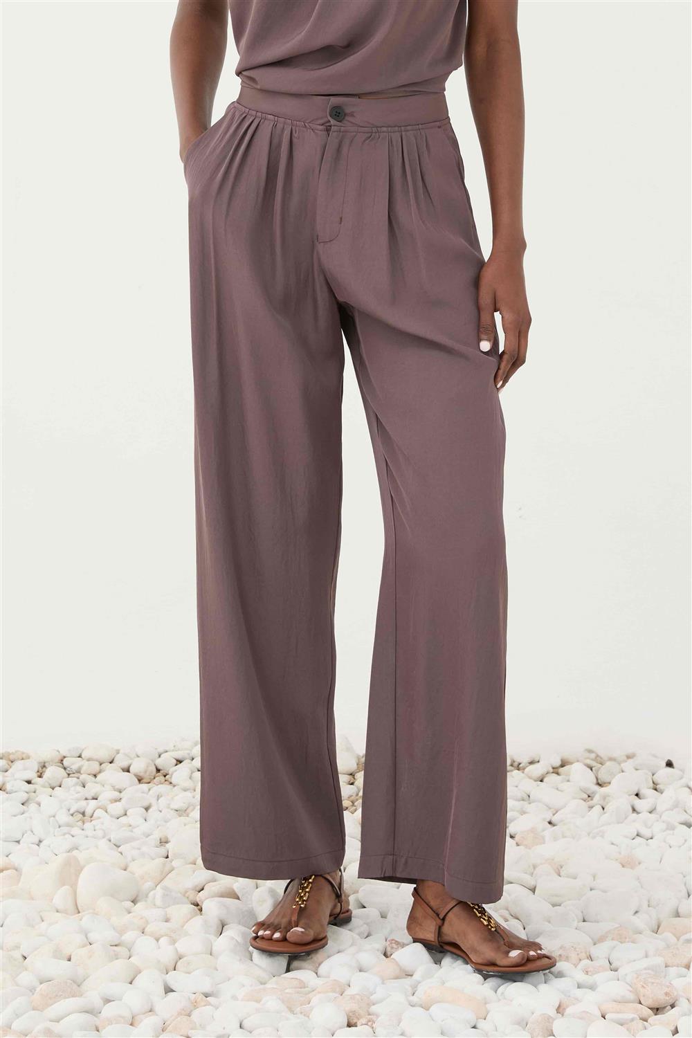 Eleh pantalone palazzo lucido malva