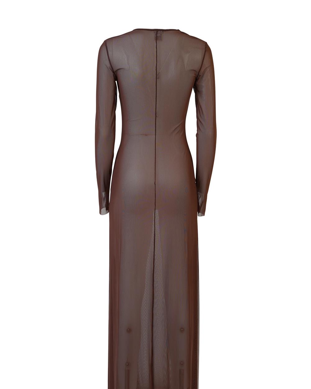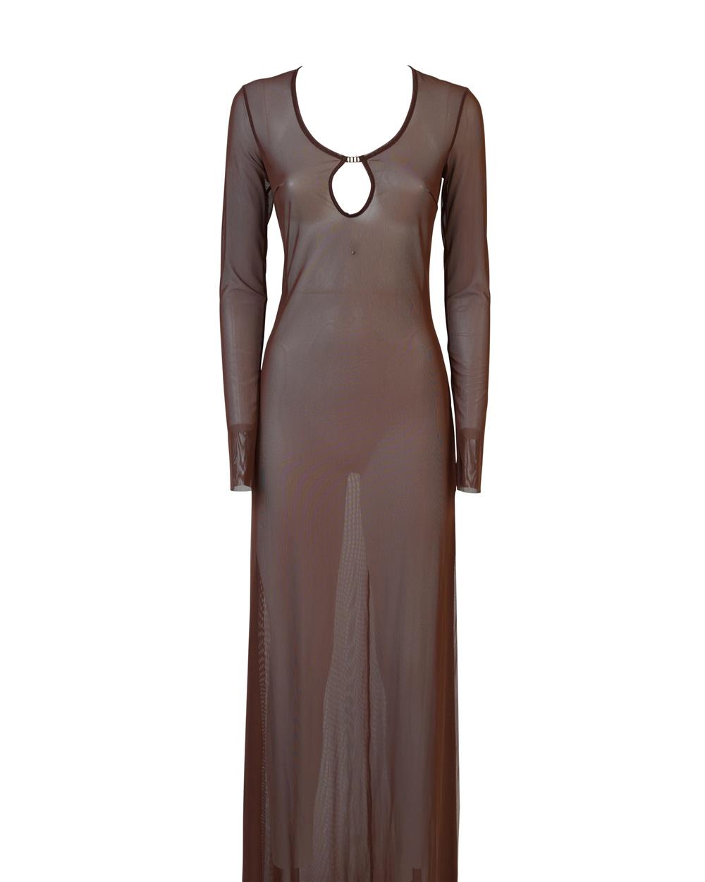 Alicia è l’abito con manica lunga e trasparenze, perfetto per creare un look glamour per le tue giornate estive, al mare, in piscina o in barca. La scollatura con logo centrale è quel dettaglio che aggiunge carattere al tuo outfit. Realizzato in tulle, un tessuto leggero e trasparente, per dettagli eleganti e femminili. In tinta unita di colore marrone.