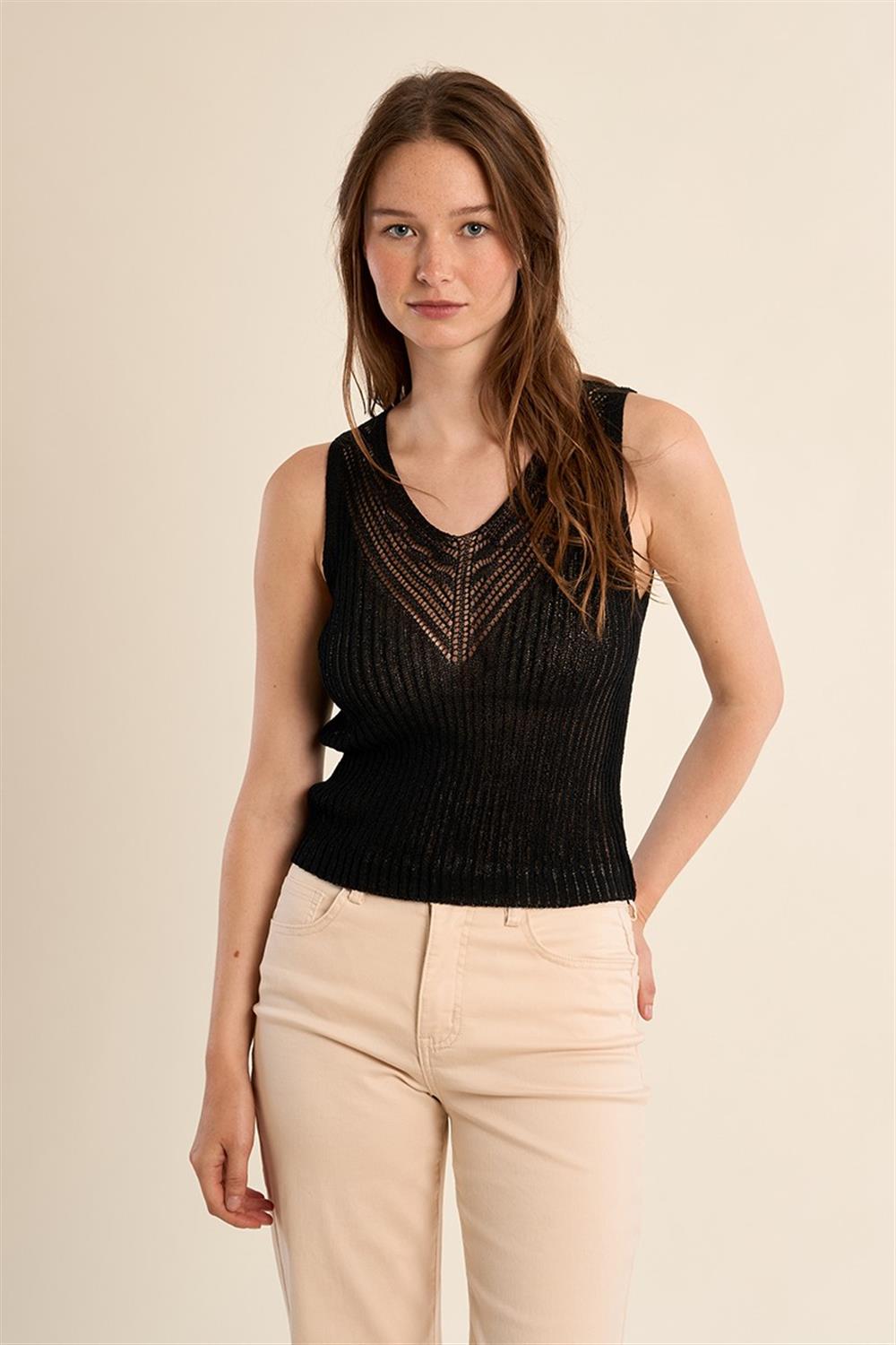 Canottiera a maglia all’uncinetto -Larghe spalline openwork -Scollo rotondo, open work -Slim fit –