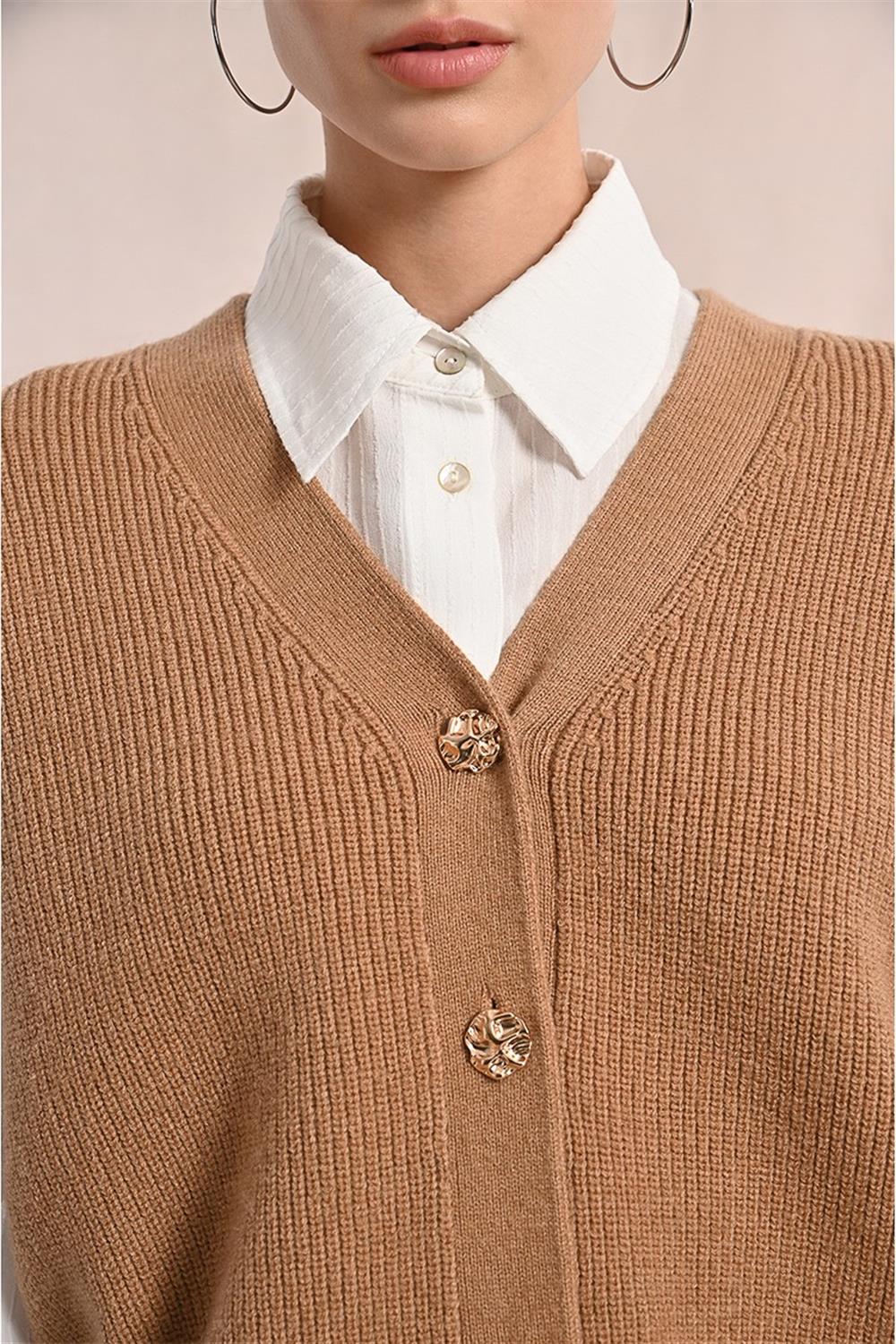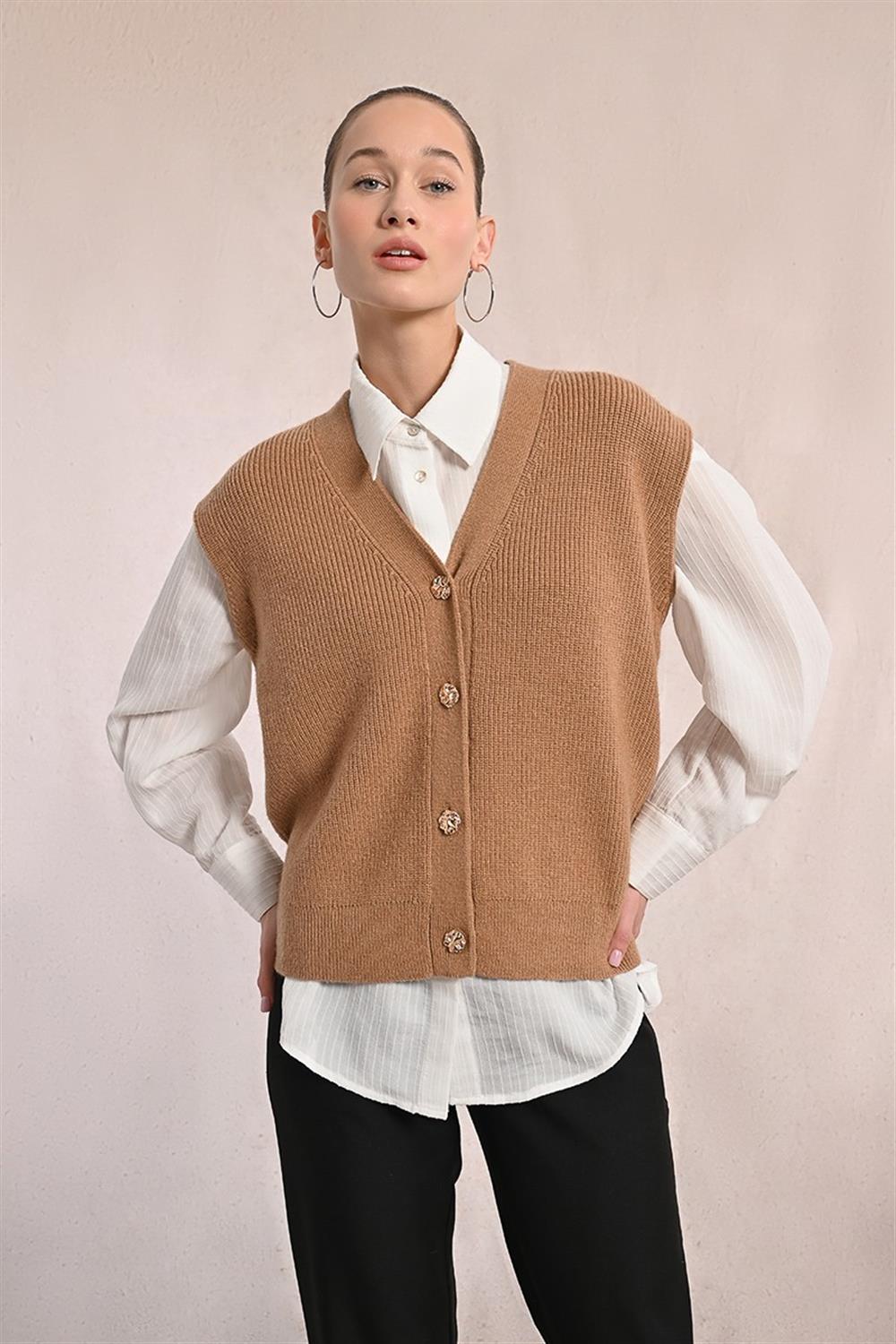 -Gilet in maglia oversize -Senza maniche -Scollatura a V -Chiusura con bottoni.