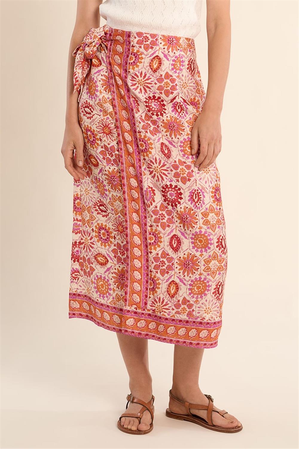 Gonna lunga stampata avvolgente – annodata in vita – Calzata dritta