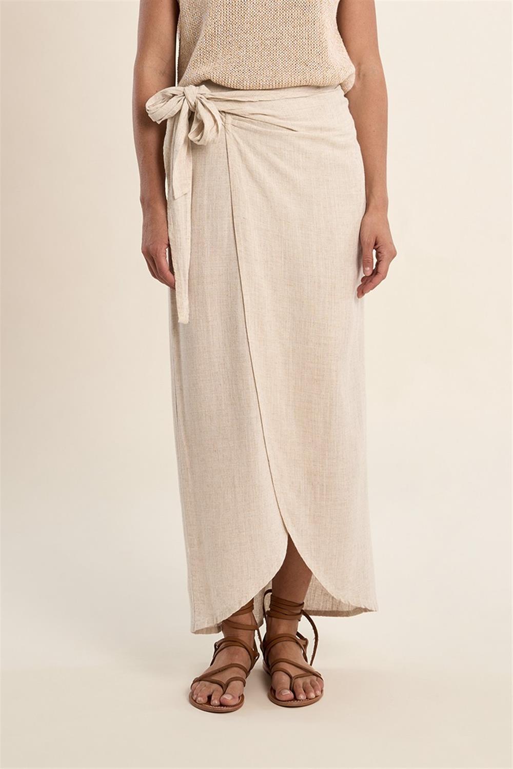 Gonna lunga, portafoglio -annodato di lato -Elasticizzato in vita