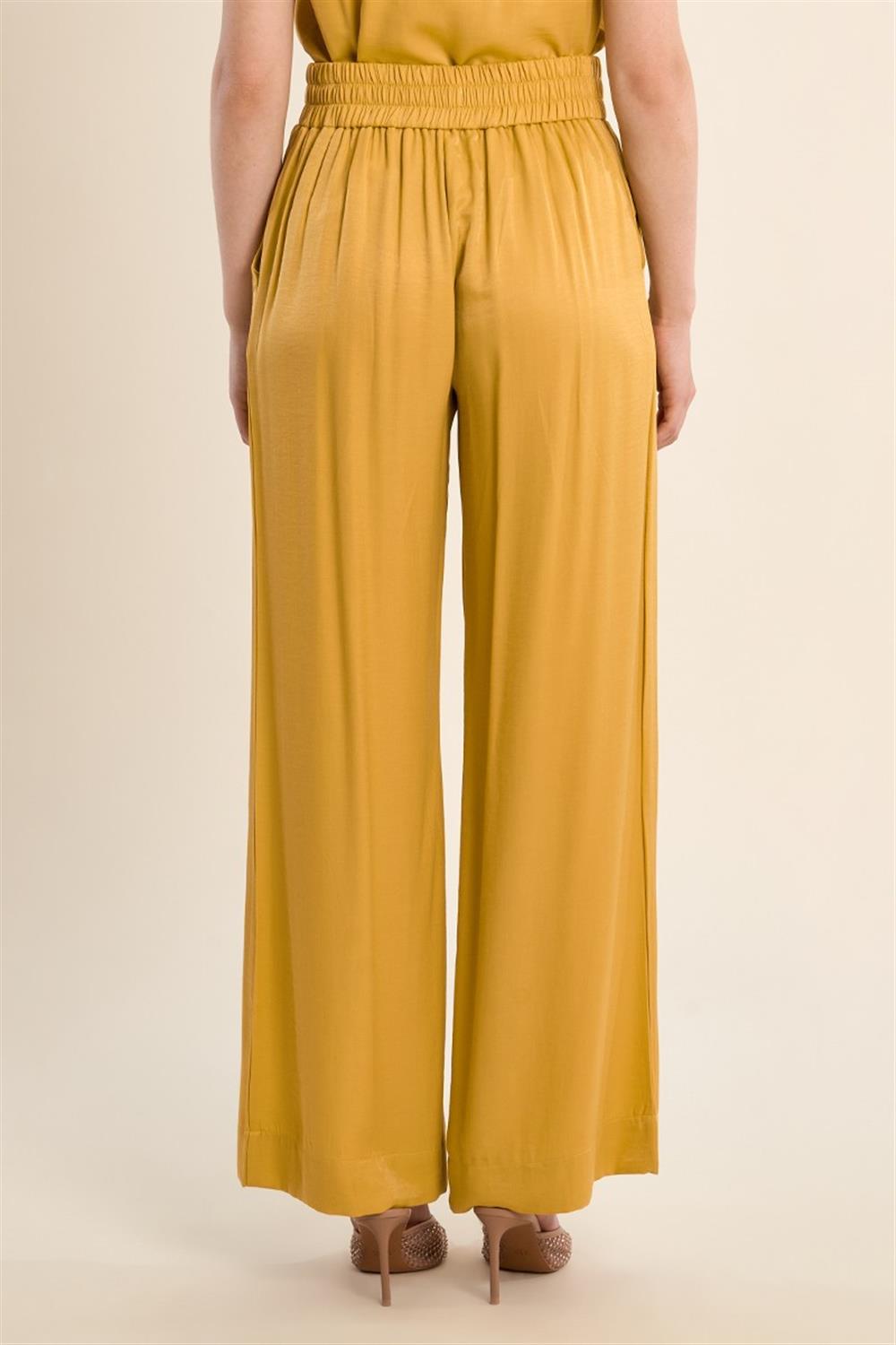 Pantaloni dritti e fluenti – Vita alta elasticizzata – Tasche laterali.