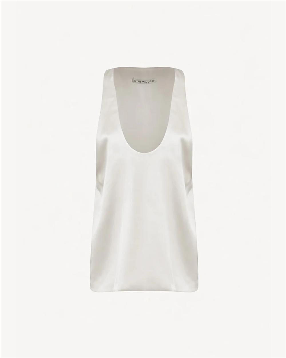 Canotta con scollatura profonda in satin. Un capo chiave dal design essenziale adatto a diversi stili. Versatilità assoluta.