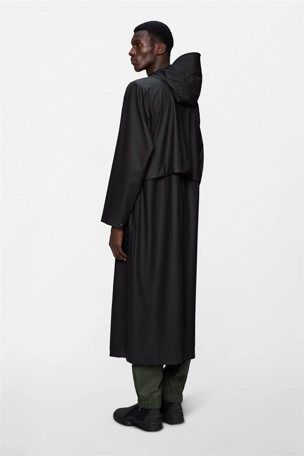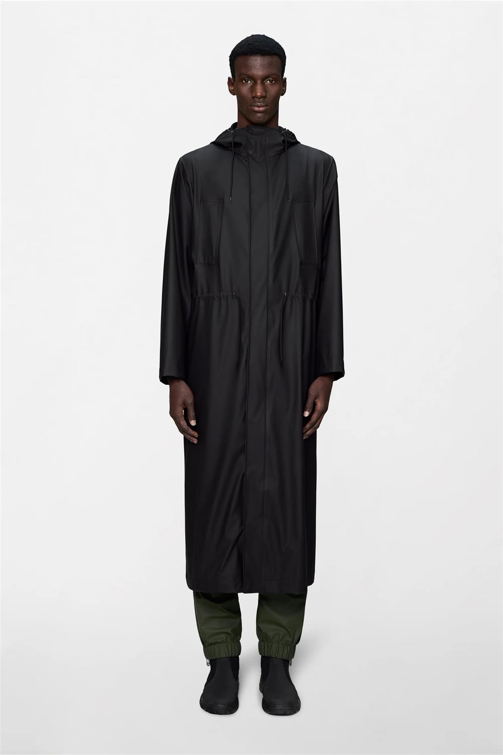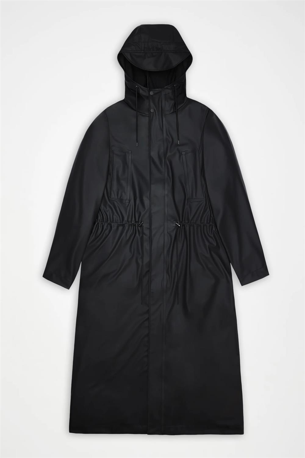 La maxi giacca è completata da coulisse di regolazione in vita e da due ampie tasche a filetto per ospitare e mantenere asciutti gli oggetti essenziali durante gli spostamenti in città.