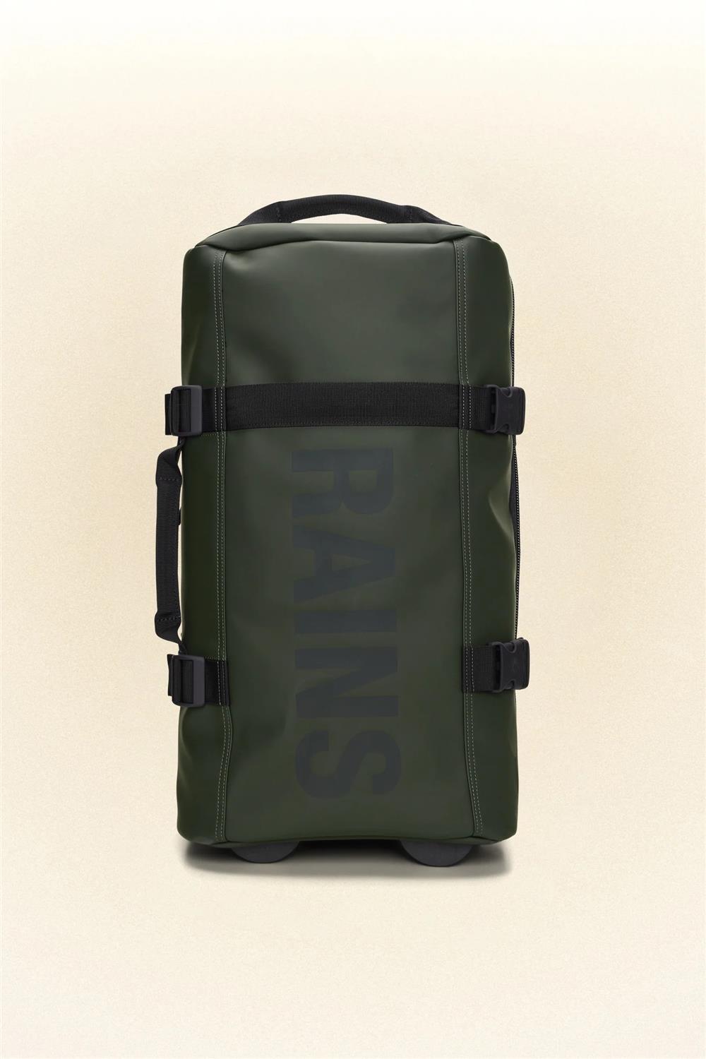 Texel Cabin Bag è la rivisitazione di Rains del trolley da viaggio, qui nelle dimensioni del bagaglio a mano.* Questo trolley impermeabile combina il PU impermeabile tipico di Rains con un guscio rigido a mezza silhouette per maggiore stabilità in posizione verticale e durata. La silhouette può essere compressa, e il contenuto tenuto fermo tramite cinghie regolabili montate lateralmente.