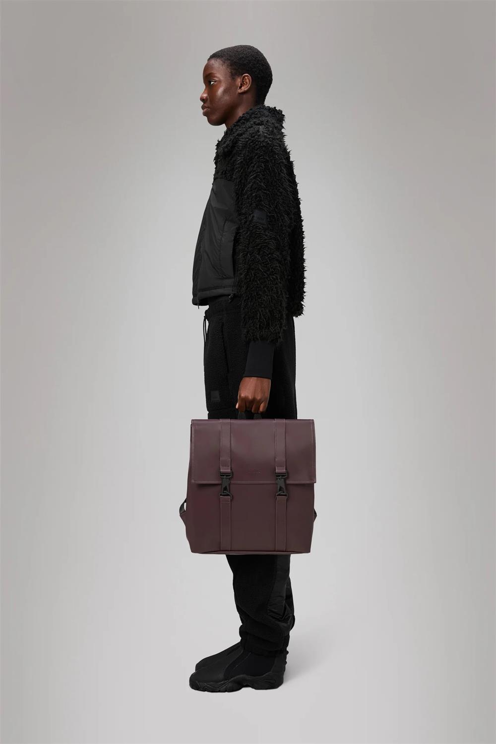 La MSN Bag Mini è tagliata in tessuto PU impermeabile firmato Rains, progettato per la forza di trasporto, la durata e una sensazione di morbidezza.