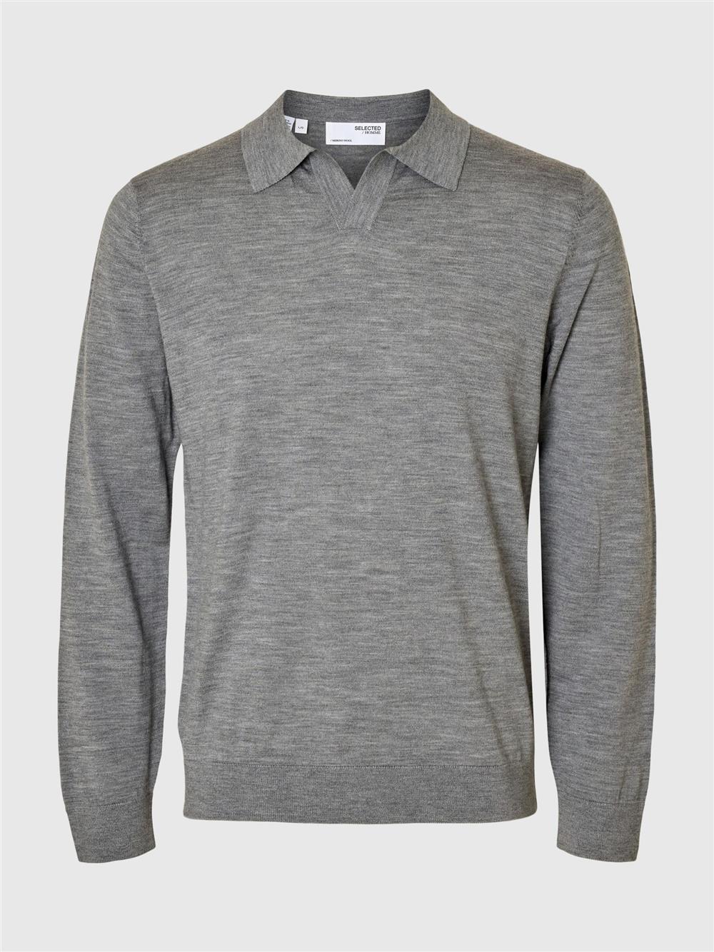 Selected polo in lana merino grigia