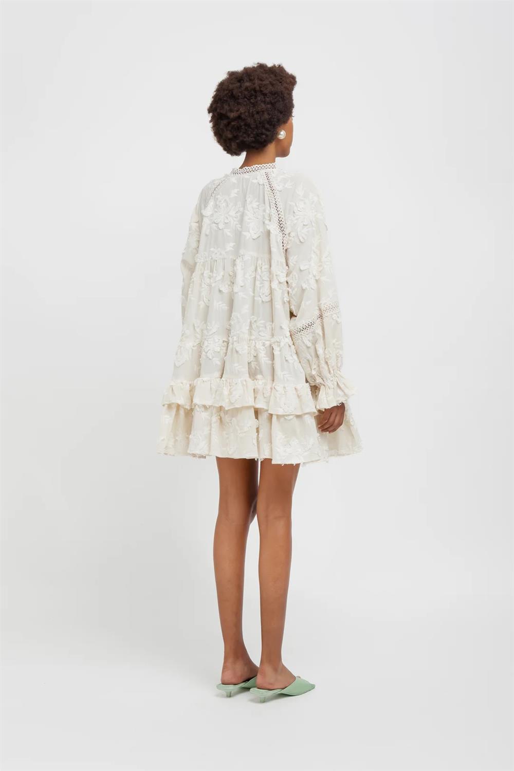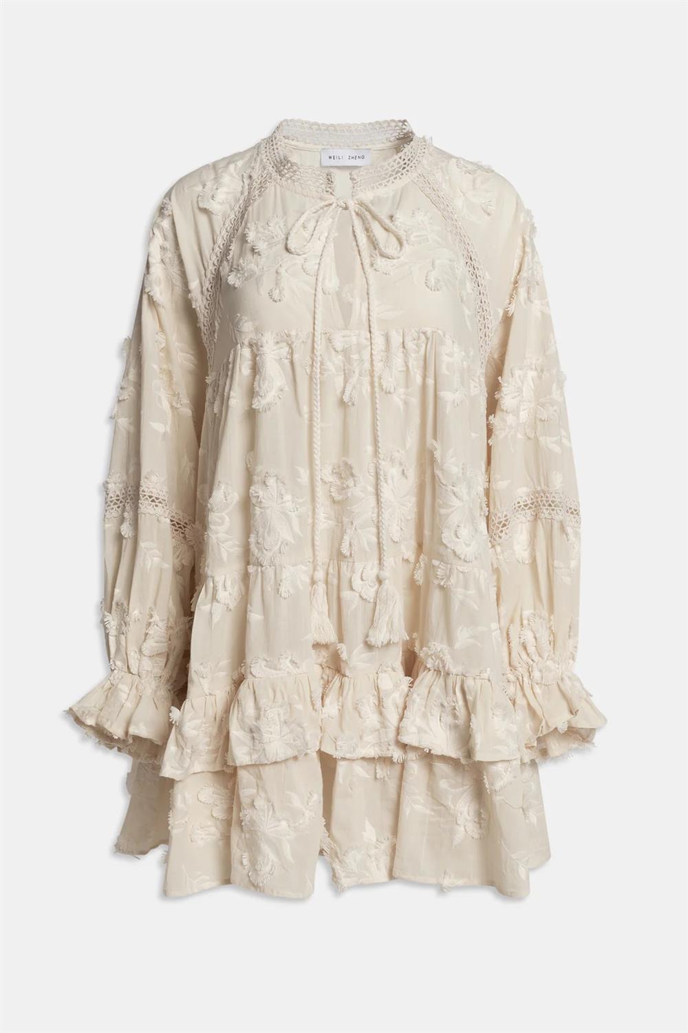 Weili Zheng abito corto ricamo panna